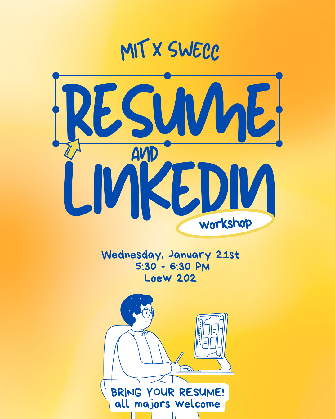 Need some last-minute resume polishing for the upcoming career fair? Want to nail your elevator pitch? ππ MiT and SWECC have you covered with our upcoming career workshop! π